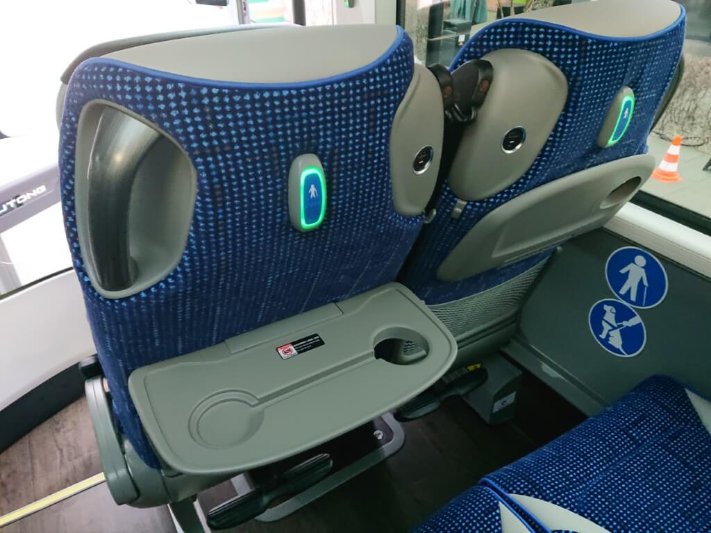 Premierowy egzemplarz miał dyskretne oświetlenie wnętrza LED, którego kolorystykę kierowca mógł zmieniać. Przy fotelach pasażerów były trzypunktowe pasy bezpieczeństwa oraz gniazda USB do zasilania osobistej elektroniki. Dostępne było również Wi-Fi. Opcjonalnie na pokładzie mogą znaleźć się monitory, służące rozrywce jadących. Autobus prezentowany w Warszawie został ponadto wyposażony w składaną windę dla wózków inwalidzkich. Ulokowano ją przy drugich drzwiach, gdzie przewidziano miejsce do ustawienia wózka.