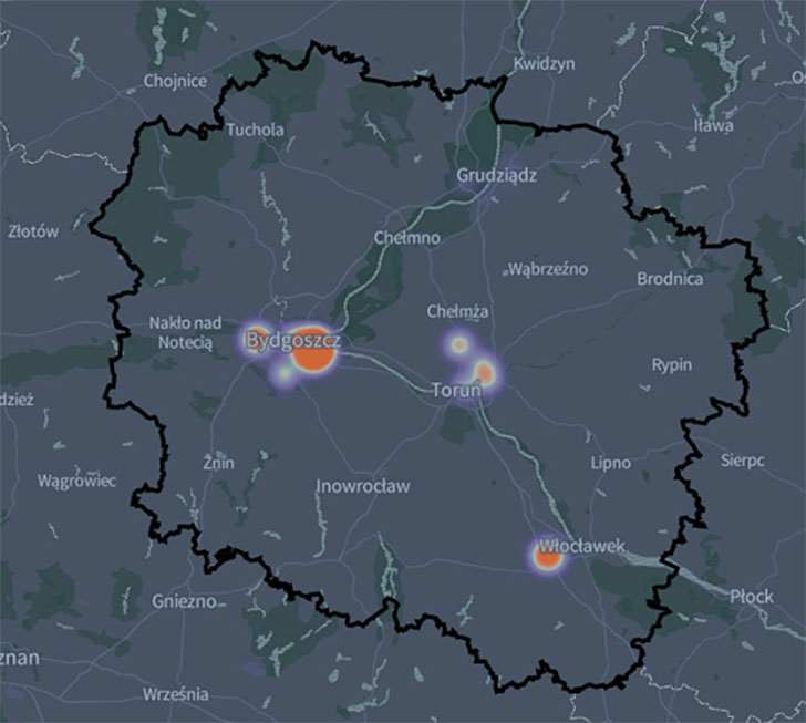 Inwestycje przemysłowe koncentrują się przede wszystkim wokół największych miast regionu, takich jak Toruń, Bydgoszcz, Grudziądz i Włocławek. Region korzysta z doskonałej dostępności komunikacyjnej zarówno do rynków zachodnich, jak i północnych.