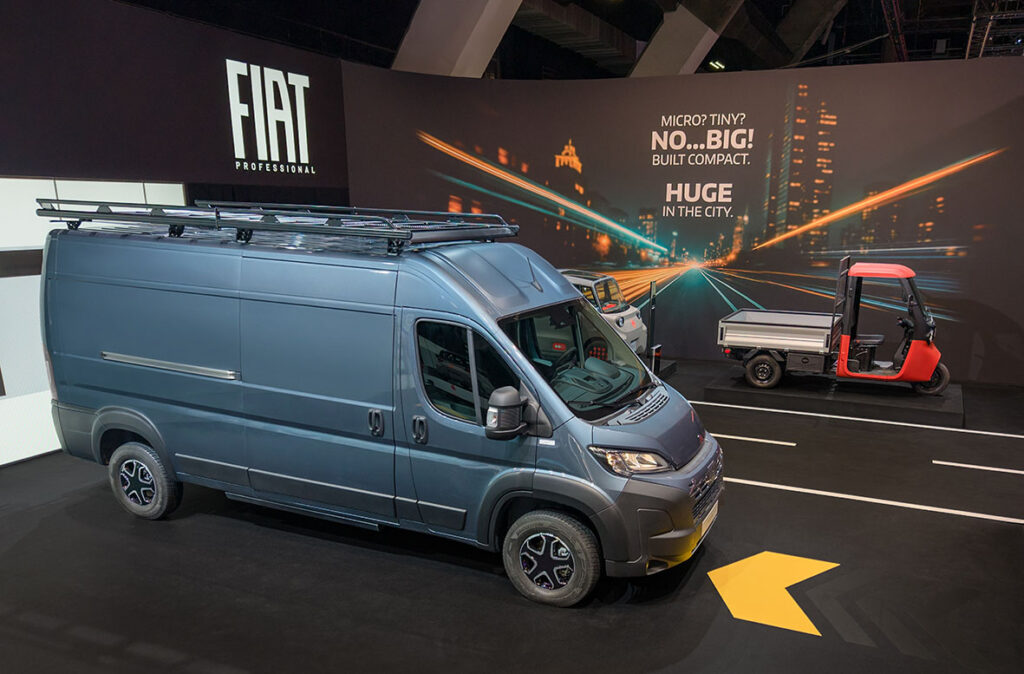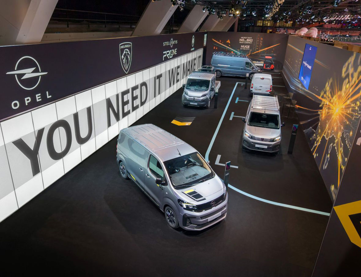 Na stoisku siedem modeli, od tych z dziedziny mikromobilności po duże vany. PEUGEOT Partner Long i Citroën Berlingo w serii specjalnej XTR reprezentują gamę kompaktowych vanów. Opel Vivaro w serii specjalnej Sportive reprezentuje gamę średnich vanów. Fiat Ducato Furgon i Citroën Jumper ze skrzynią i podwójną kabiną to przedstawiciele gamy dużych vanów. Natomiast Citroën Ami Cargo i FIAT Professional TRIS to modele z oferty zapewniającej mikromobilność.