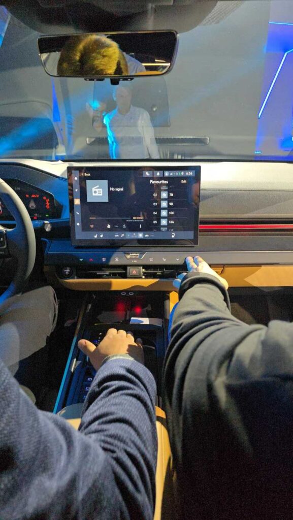 Wnętrze, zaprojektowane zgodnie z nową filozofią stylistyczną „Clean x Tech”, łączy minimalizm z funkcjonalnością. Na środku jest 14-calowy ekran multimediów, a przed kierowcą 12,3-calowy cyfrowy zestaw wskaźników. Innowacją są przyciski „Hidden Tech”, czyli fizyczne przełączniki zintegrowane z deską rozdzielczą, podświetlane dopiero po uruchomieniu auta. Takie rozwiązanie nadaje wnętrzu czysty i nowoczesny wygląd.