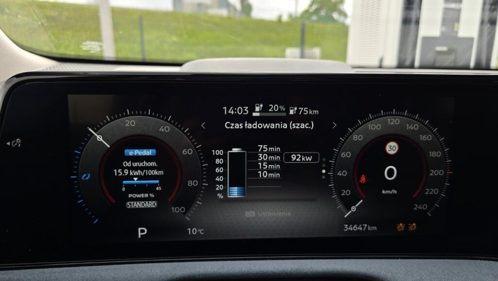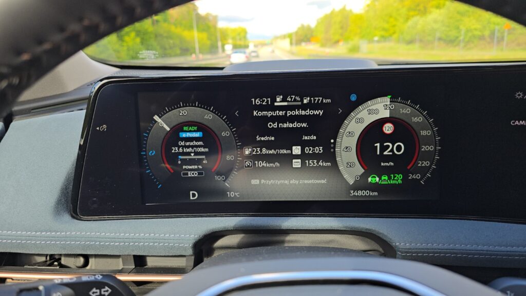 Przejechałam tym samochodem ponad 1200 km. Tym razem podeszłam do napędu elektrycznego prawie jak do spalinowego. Prawie – bo nie da się tego jeszcze wyeliminować – trzeba na podróż zawsze zarezerwować sobie więcej czasu. Pojechałam w trasę, więc po drodze się ładowałam. Nie było specjalnych komplikacji. Raz musiałam zresetować staję ładowania, bo nie chciała działać (kolejne 15 min w podróży stracone). Na każde ładowanie w trasie trzeba doliczyć około 40 min, by zjechać, dojechać, podłączyć, rozłączyć itd. Nie da się tego pominąć.