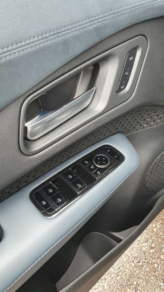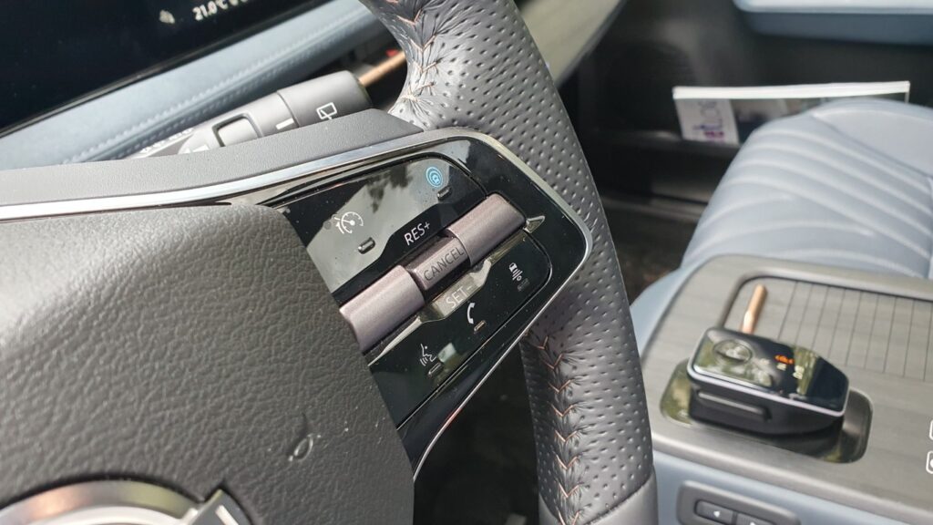 Przednie fotele wentylowane, elektrycznie regulowane w wielu kierunkach z pamięcią ustawień, oraz szeroka regulacja kolumny kierownicy sprawiają, że każdy powinien znaleźć dla siebie wygodną pozycje nawet w bardzo długiej trasie.