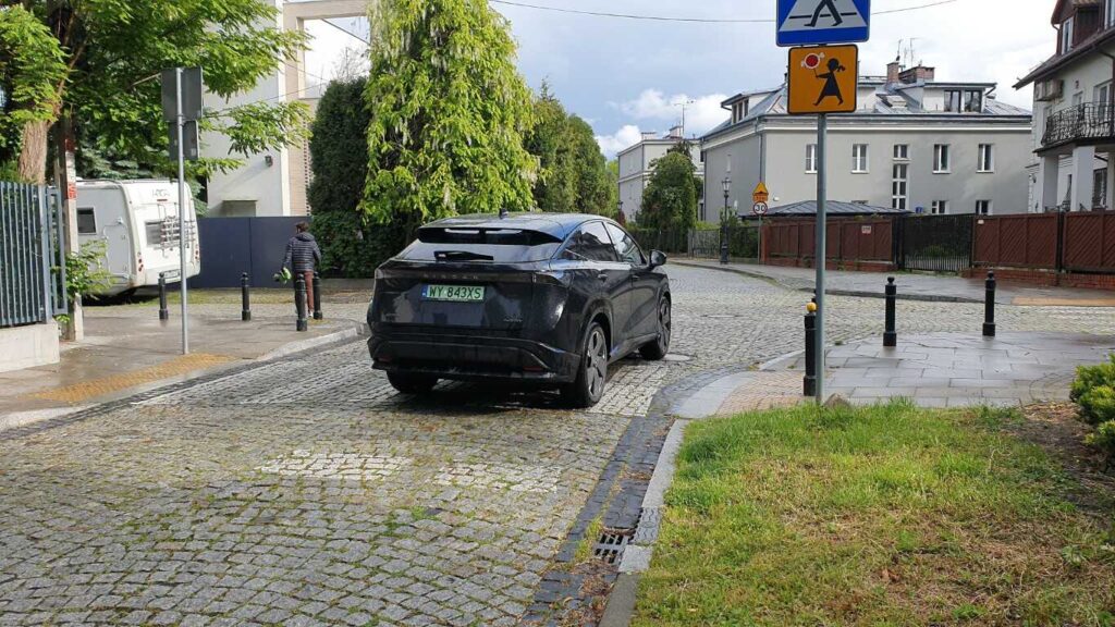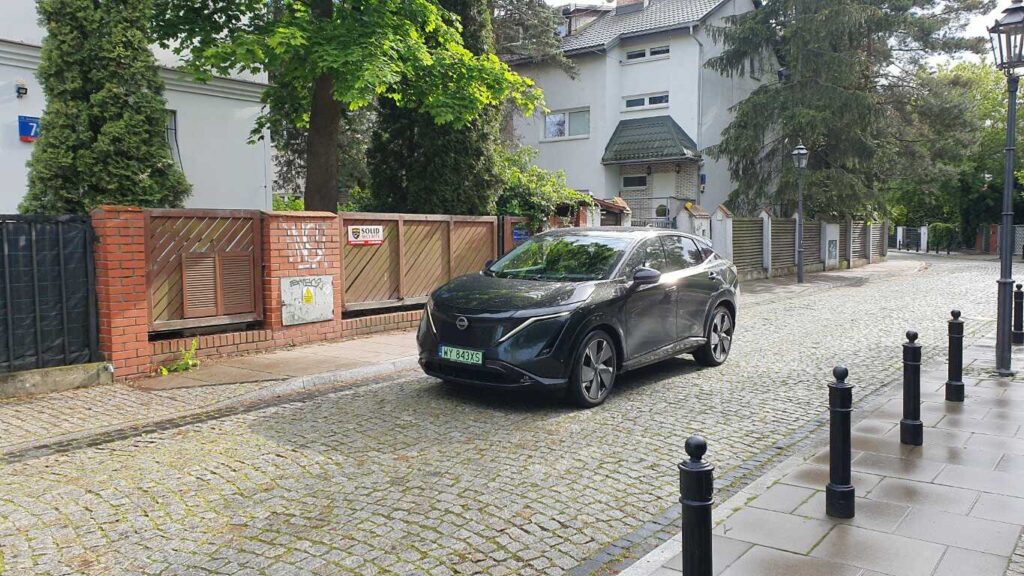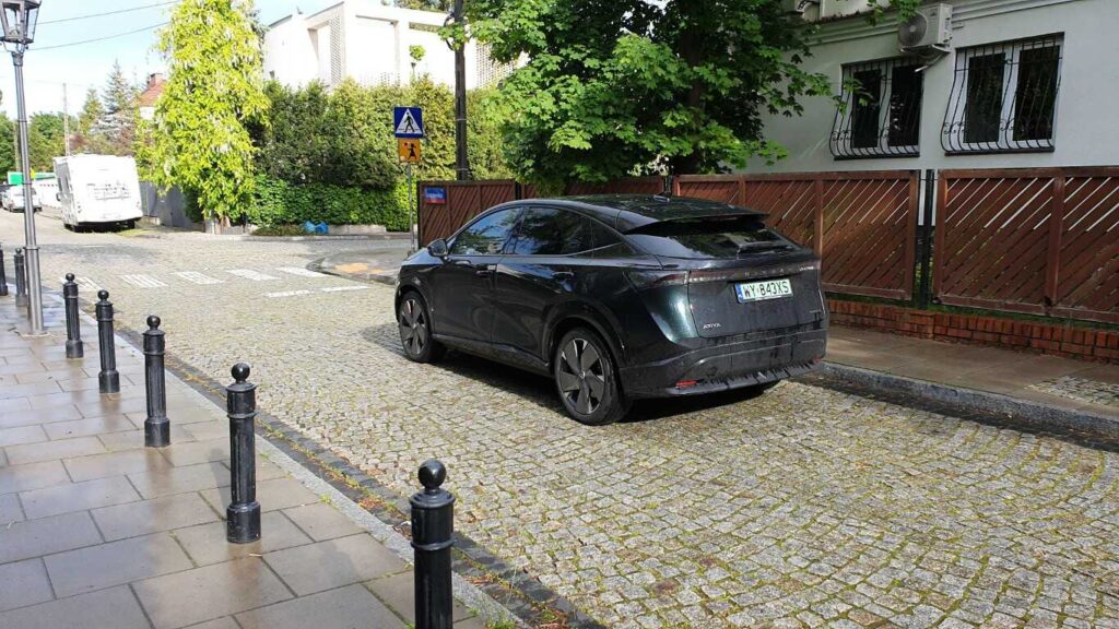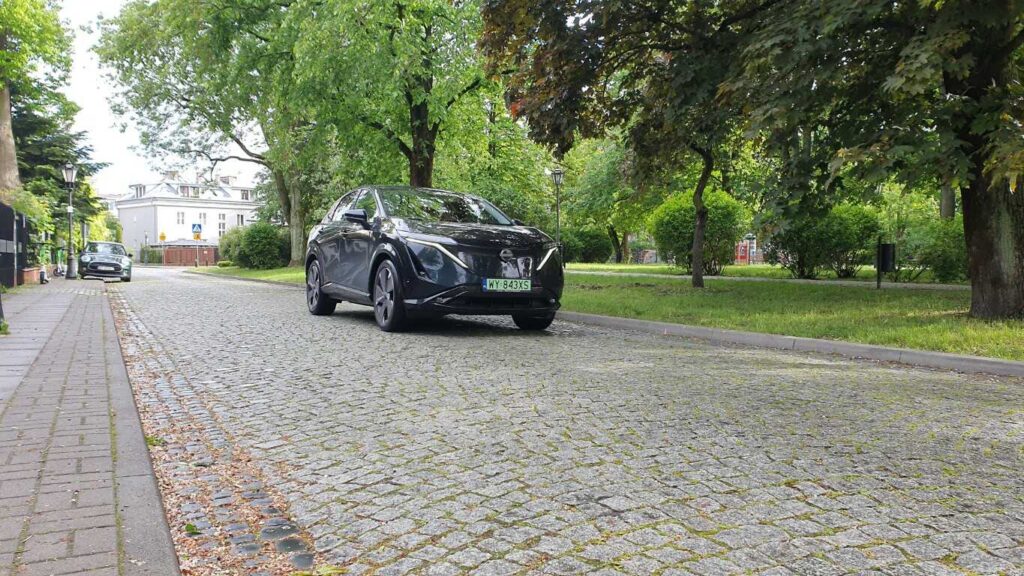 Ariya Evolve+ to auto przewidywalne, a zarazem dostarczające sporo emocji za kierownicą. Układ kierowniczy jest elektrycznie wspomagany i świetnie dostosowuje się do sytuacji i prędkości. Zawieszenie (kolumny MacPhersona z przodu, wielowahaczowe z tyłu) jest dość sztywne, co sprawia, że auto jest stabilne i dobrze się prowadzi przy wyższych prędkościach, ale może być uciążliwe na nierównościach.
