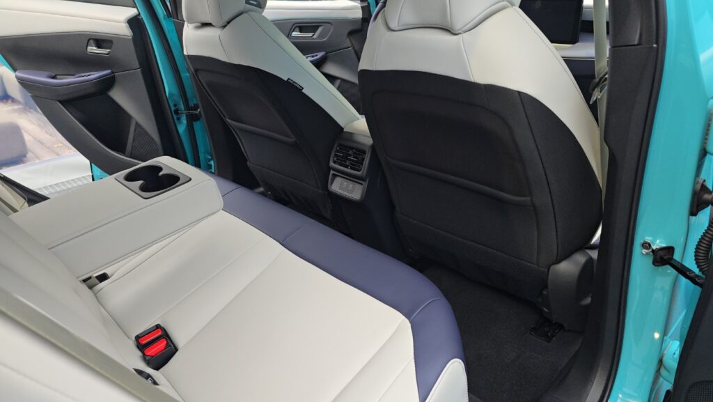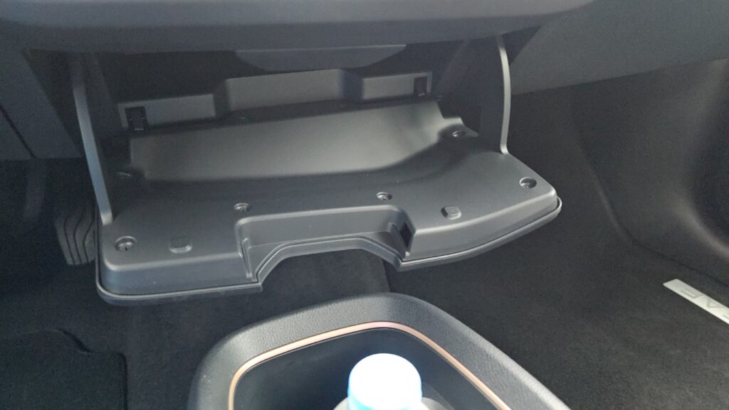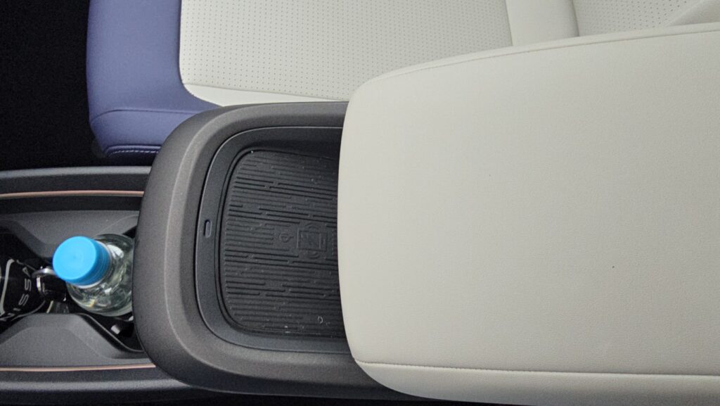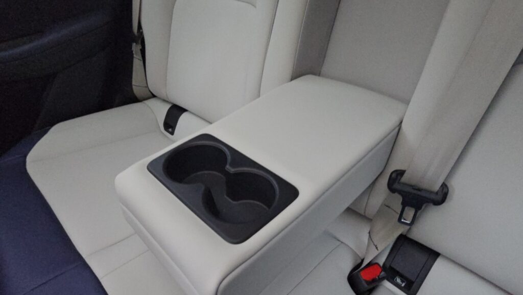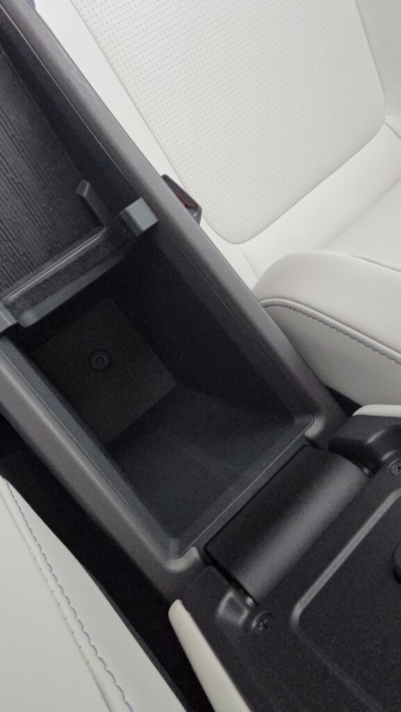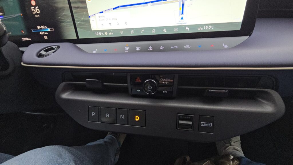 Fotel kierowcy ma elektryczną regulacją w sporym zakresie. Podobnie jak w Ariyii na konsoli środowej zastosowano dotykowe, podświetlane przyciski, którymi regulujemy m.in. siłę nawiewów czy temperaturę. Poniżej zamontowano zamykany schowek i drugi przed pasażerem. Konsola środkowa umieszczona między przednimi fotelami ma dwa poziomy. Wygospodarowano tam miejsca na kubki, półkę na telefon z ładowarką indukcyjną oraz schowek w podłokietniku.