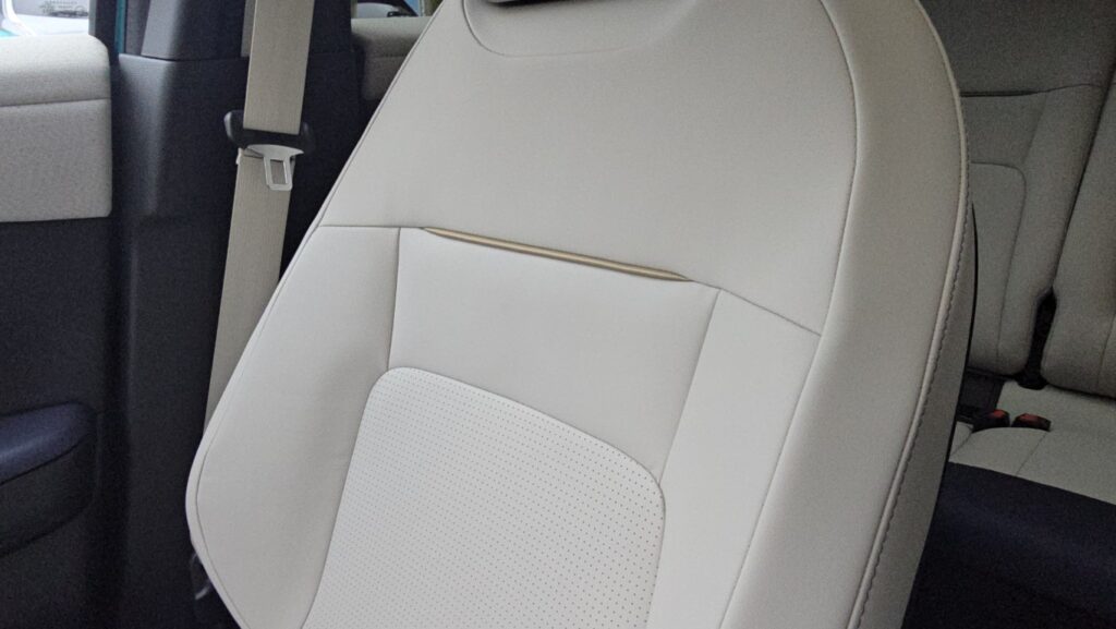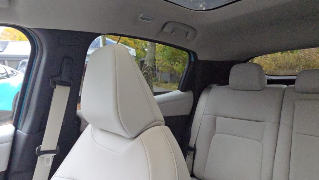Miejsca na nogi i nad głową jest wystarczająco dla kierowcy oraz pasażerów pierwszego i drugiego rzędu. Z tyłu mogą podróżować trzy osoby średniej postury, choć pasażer środkowego miejsca, mimo że podłoga jest płaska, będzie musiał siedzieć „okrakiem”. Dlaczego? Bo odległość konsoli środkowej od tylnej kanapy jest na tyle mała, że nie zmieszczą się tam stopy. Komfort podróży zwiększają podgrzewane fotele z przodu i podgrzewana kierownica, co pozwala na szybsze osiągnięcie komfortu nawet przy niskiej temperaturze bez konieczności intensywnego ogrzewania całej kabiny, a to sprzyja oszczędzaniu energii.