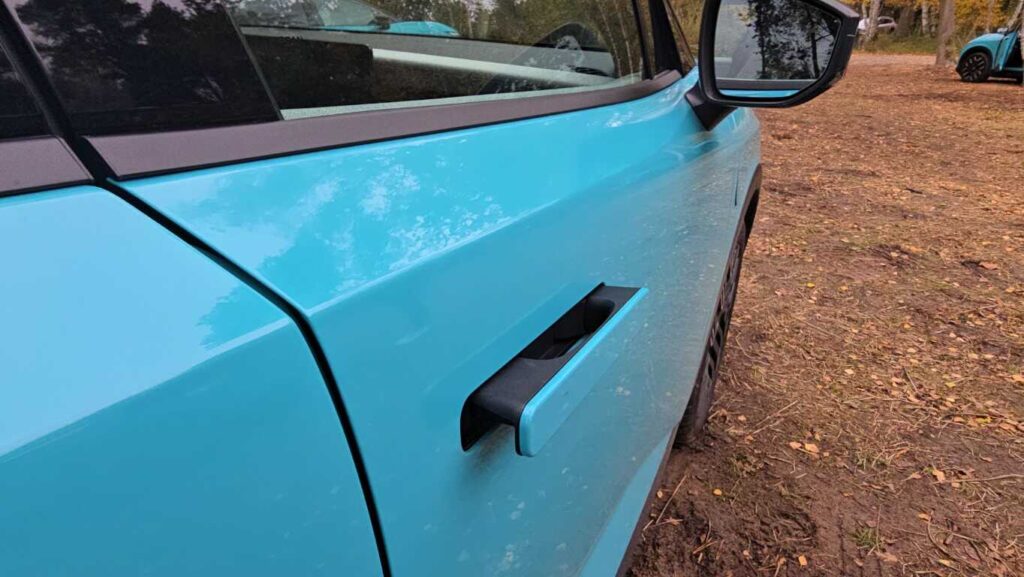 Do dyspozycji są cztery tryby rekuperacyjne oraz funkcja e-pedal, pozwalająca na jazdę praktycznie przy użyciu jednego pedału. Ten tryb sprawdza się bardzo dobrze, zapewniając komfortowe i płynne hamowanie rekuperacyjne. Tryby rekuperacyjne zmieniamy za pomocą łopatek pod kierownicą. Pierwszy przypomina wytracanie prędkości z podobną siłą jak to ma miejsce w samochodzie spalinowym po zdjęciu nogi z pedału gazu, a ostatni – czwarty przypomina działaniem, siłą wyhamowywania i rekuperacji e-pedal. E-pedal załączamy za pomocą przycisku umieszczonego w konsoli środkowej. Ten tryb najlepiej sprawdza się w mieście, co nie oznacza, że nie można z niego korzystać również na drogach szybkiego ruchu. Siła wyhamowywania zależna jest od prędkości, z jaką się poruszamy i od tego jak operujemy pedałem przyspieszenia, można więc tak to robić, żeby jechać płynnie za pomocą jednego pedału też w trasie. Wymaga to tylko wprawy.