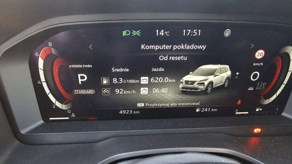 Testowe auto to Nissan X-Trail w najwyższej wersji wyposażenia Tekna z silnikiem benzynowym 1,5-litrowym o mocy 163 KM właśnie z miękką hybrydą. Z tą jednostką współpracuje bezstopniowa skrzynia Xtronic. Napęd jest tu na przednią oś. X-Trail to duży rodzinny SUV. Można nim komfortowo podróżować, choć nie jest mistrzem przyspieszania, a do tego lubi paliwo, szczególnie przy wyższych prędkościach.