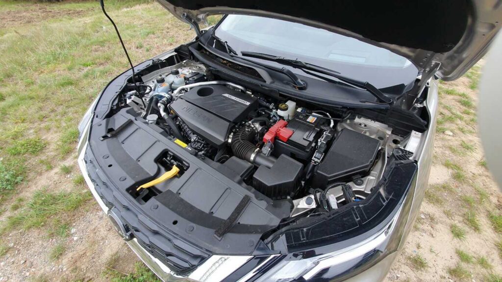 Miękka hybryda podczas hamowania odzyskuje energię, która gromadzona jest w akumulatorze litowo-jonowym i potem wykorzystywana podczas ruszania, przyspieszania lub podjeżdżania pod wzniesienia. To pozwala zaoszczędzić paliwo wówczas, gdy samochód go najwięcej potrzebuje. Bezstopniowa skrzynia Xtronic sprawdza się całkiem nieźle, ale jeżeli chcemy mieć większy wpływ na zachowanie pojazdu podczas przyspieszania czy zwalniania, możemy korzystać z łopatek pod kierownicą, by symulować zmiany biegów. Podczas codziennej jazdy to zbyteczna czynność. Skrzynia reaguje zgodnie z oczekiwaniami: po mocniejszym wciśnięciu gazu, samochód dynamicznie przyspiesza. X-Trail z tym układem napędowym do setki potrzebuje 9,6 s, co biorąc pod uwagę wielkość i sylwetkę tego auta, jest przeciętną wartością.