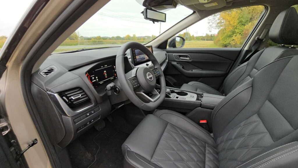 We wnętrzu dominują trzy duże ekrany: 12,3-calowy elektroniczny kokpit, który może mieć widok klasyczny lub bardziej nowoczesny, 12,3-calowy ekran multimediów z możliwością bezprzewodowego działania Android Auto i ponad 10-calowy ekran przezierny, za pomocą którego są wyświetlane informacje na szybie.