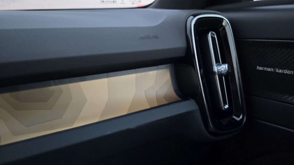 EX40 wyposażony jest w pixelowe reflektory LED (84 diody każdy), automatyczne blokady drzwi, asystenta pasa ruchu oraz adaptacyjny temopomat (Adaptive Cruise Control i Pilot Assist). Wsparciem na co dzień jest zestaw kamer 360 stopni i system automatycznego parkowania. Wszystkie systemy asystujące, od adaptacyjnego tempomatu, przez rozpoznawanie znaków, aż po Pilot Assist, pracowały precyzyjnie i dyskretnie.