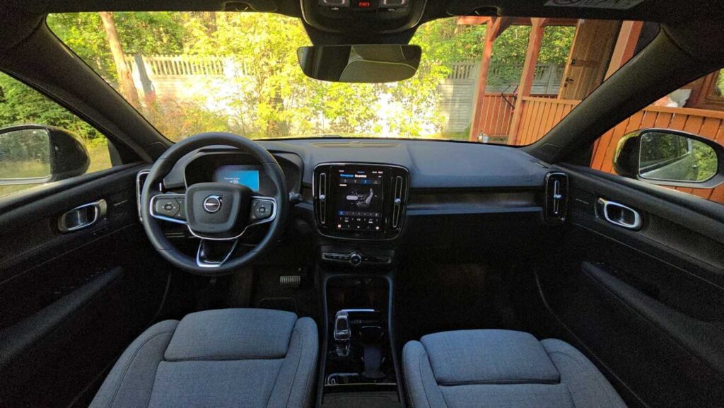 W praktyce system rekuperacji Volvo EX40 ułatwia prowadzenie za pomocą jednego pedału w ruchu miejskim i podmiejskim, co redukuje konieczność korzystania z hamulca i jest bardzo wygodne.