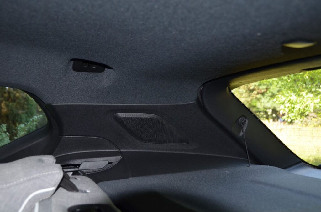 Z tyłu cały czas jest tunel, dość wysoki, ale wąski. Natomiast siedzisko jest miękkie, oparcie twarde – więc będzie umiarkowanie wygodnie. Ciekawe rozwiązanie to automatycznie składane zagłówki tylnej kanapy. Dzięki tej funkcji możemy szybko odsłonić szybę z tyłu, ale też przydaje się, gdy chcemy złożyć oparcie tylnej kanapy.