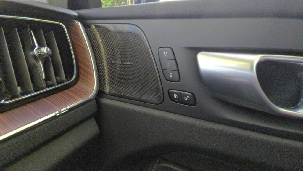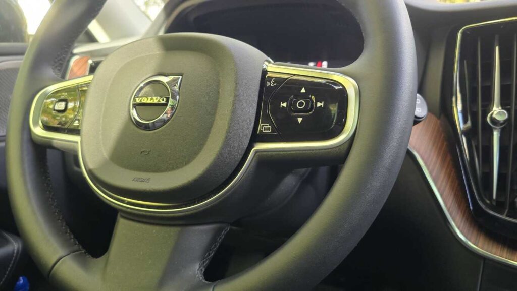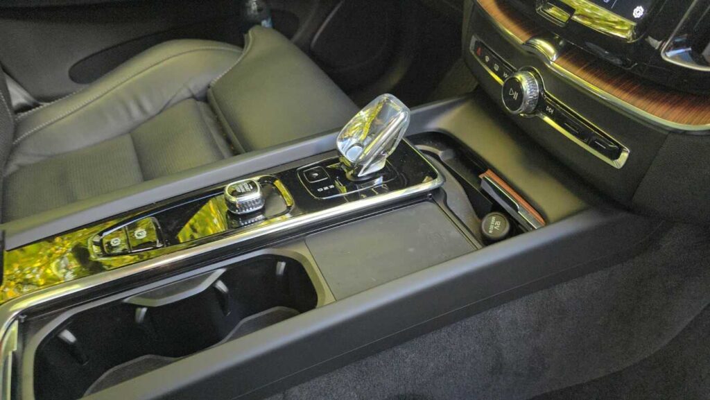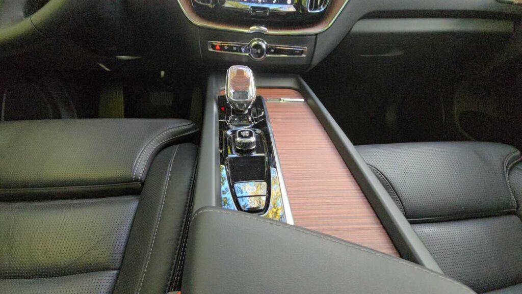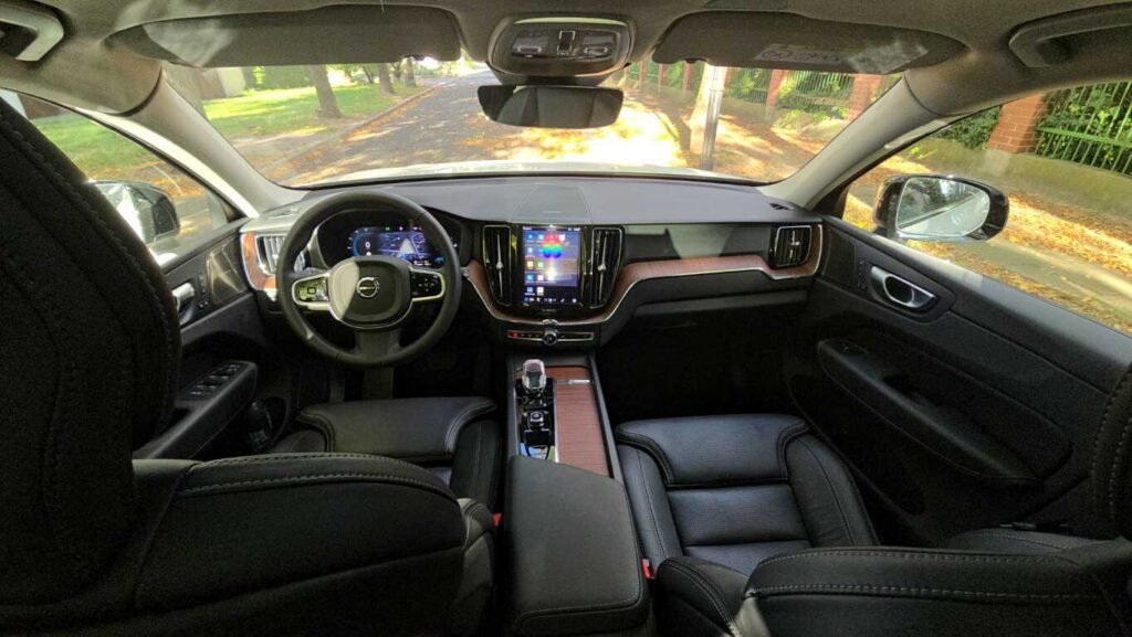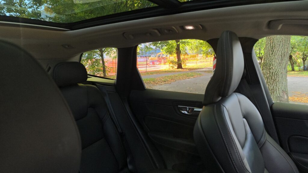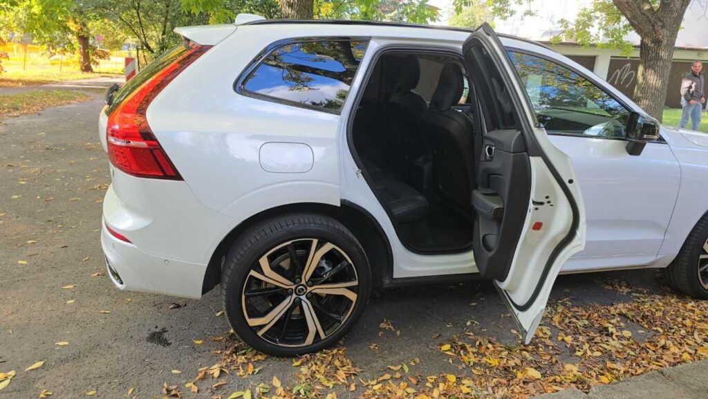 Wnętrze XC60 w wersji Plus jest bardzo dobrze wykończone: skórzane fotelach z przeszyciami, wentylowane i podgrzewane, drewniane i chromowane wstawki oraz tradycyjne szwedzkie akcenty. Fotel ma duży zakres regulacji. Zarówno wysokość, odległość od kierownicy, podparcie odcinka lędźwiowego, jak i podparcie boczne pozwalają precyzyjnie dopasować go do każdej sylwetki. Osobiste ustawienie można zaprogramować, co ułatwia zajmowanie miejsca za kierownicą przy zmianie kierowców. Są dwie możliwości zapisania ustawienia. Podłokietnik, mimo że nie jest przesuwany, znajduje się w dobrym miejscu niezależnie od postury kierowcy. Schowki w drzwiach są obszerne, podświetlany przed pasażerem wyłożono miękkim materiałem, a w konsoli centralnej można zakryć pojemniki roletkami. Telefon i inne urządzenia elektroniczne można ładować za pomocą gniazd USB typu C lub 12-voltowych. Jest też ładowarka indukcyjna.