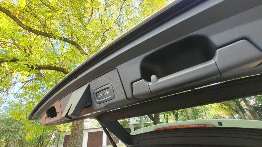Przed kierowcą jest 12-calowy elektroniczny kokpit, a obok 9-calowy ekran multimediów. System opiera się na Google, co oznacza, że mamy dostęp do wielu aplikacji, a po zalogowaniu również do swojego konta. W testowanym modelu nie można było korzystać natomiast z aplikacji Android Auto, dostępny był tylko Apple CarPlay. Na konsoli środkowej umieszczono kryształowy przełącznik do obsługi skrzyni biegów. Trzeba przyznać, że robi bardzo dobre wrażenie, jak na klasę premium przystało. Zastosowano tu też panoramiczny dach z tekstylną roletą. Wnętrze podzielono kolorystycznie: góra jest jasna, a dół w ciemny, co optycznie powiększa przestrzeń, czyniąc ją bardziej przyjazną.