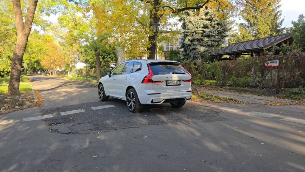 Zawieszenie testowanej wersji ze sprężynami śrubowymi dobrze tłumi nierówności w mieście i zachowuje komfort przy szybszej jeździe. Samochód nie wychyla się przesadnie na zakrętach. W Volvo XC60 jest cicho. Nawet podczas jazdy autostradą z prędkością 140 km/h można normalnie ze sobą rozmawiać lub z przyjemnością słuchać muzyki.